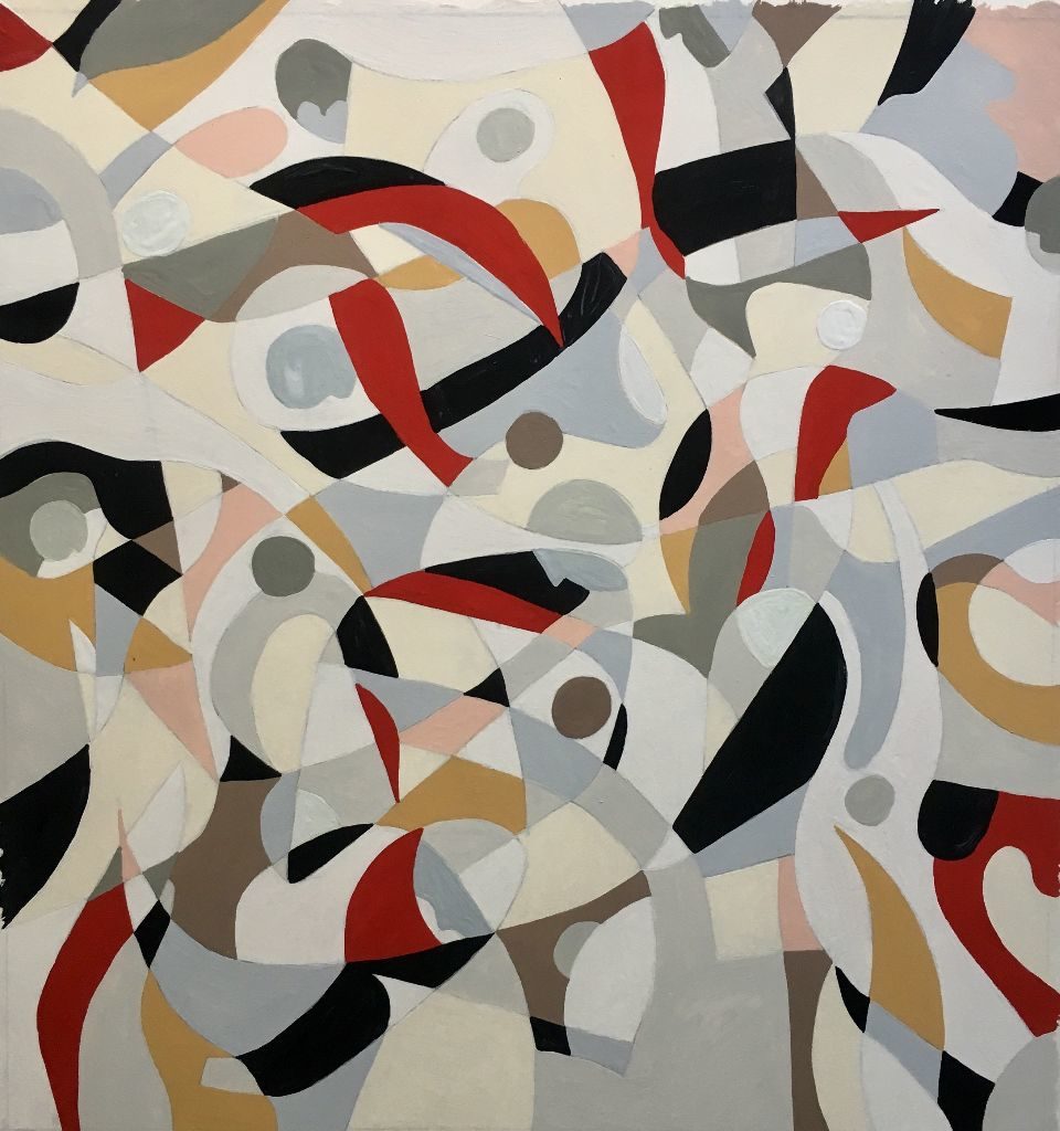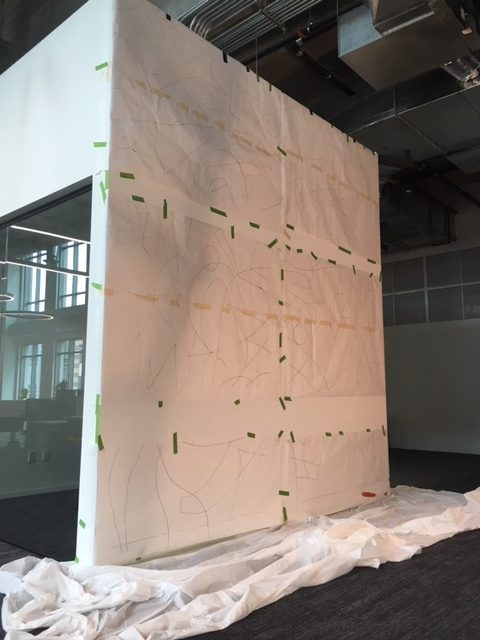 Someone asked me what the mural was about. They wanted to understand it to explain to clients who would inevitably ask. I don’t like to offer interpretations of my work. A piece means something to me but I prefer that onlookers decide for themselves. So I replied that an abstract piece offers a great opportunity for explanation. If you look at a Rembrandt you might say, it’s a painting of a woman or a plate of oranges. When you look an abstract you simply drop all nouns and describe it using verbs and adjectives. Its about collaboration and teamwork and the creative process and being bold and confident. My response seemed to please him.